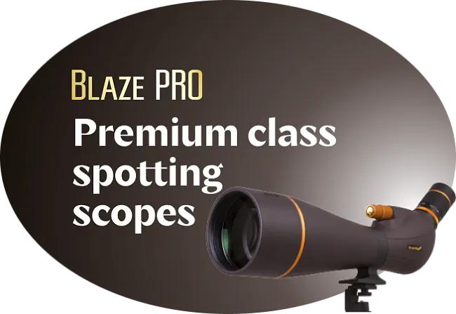 Levenhuk Blaze PRO Spotting Scopes are powerful high-aperture optical tools impervious to unfavorable weather and severe observation conditions. Their optical scheme is significantly better than the one in Levenhuk Blaze PLUS series optical tools and ensures that you will receive a sharp, clear and vivid image in any conditions. The “younger” models in this series provide the highest magnification power among similar optical tools in this class. You can find a spotting scope in a wide range that will serve your personal needs. The main features of Levenhuk Blaze PRO series are coated optics made of BK-7 glass, waterproof nitrogen-filled body, removable metal eyepiece, smooth variable magnification and a tripod in the kit.